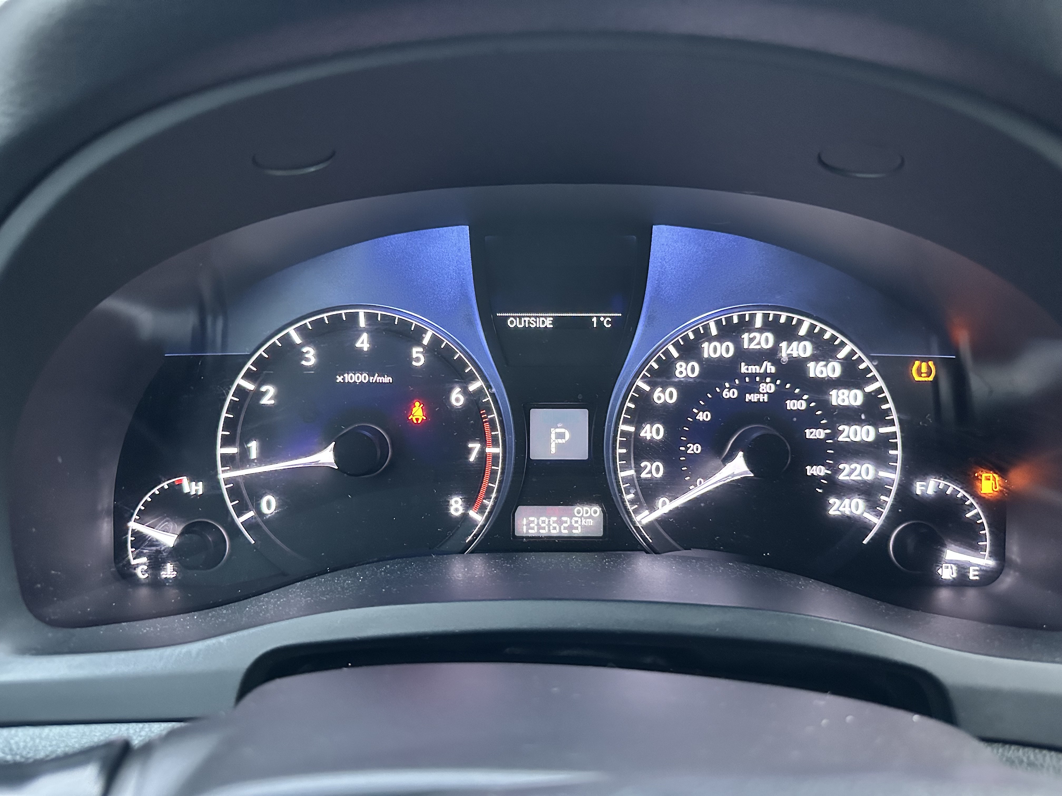 Warnings -inc: low fuel, low engine oil level, low washer fluid, front seat belt warning