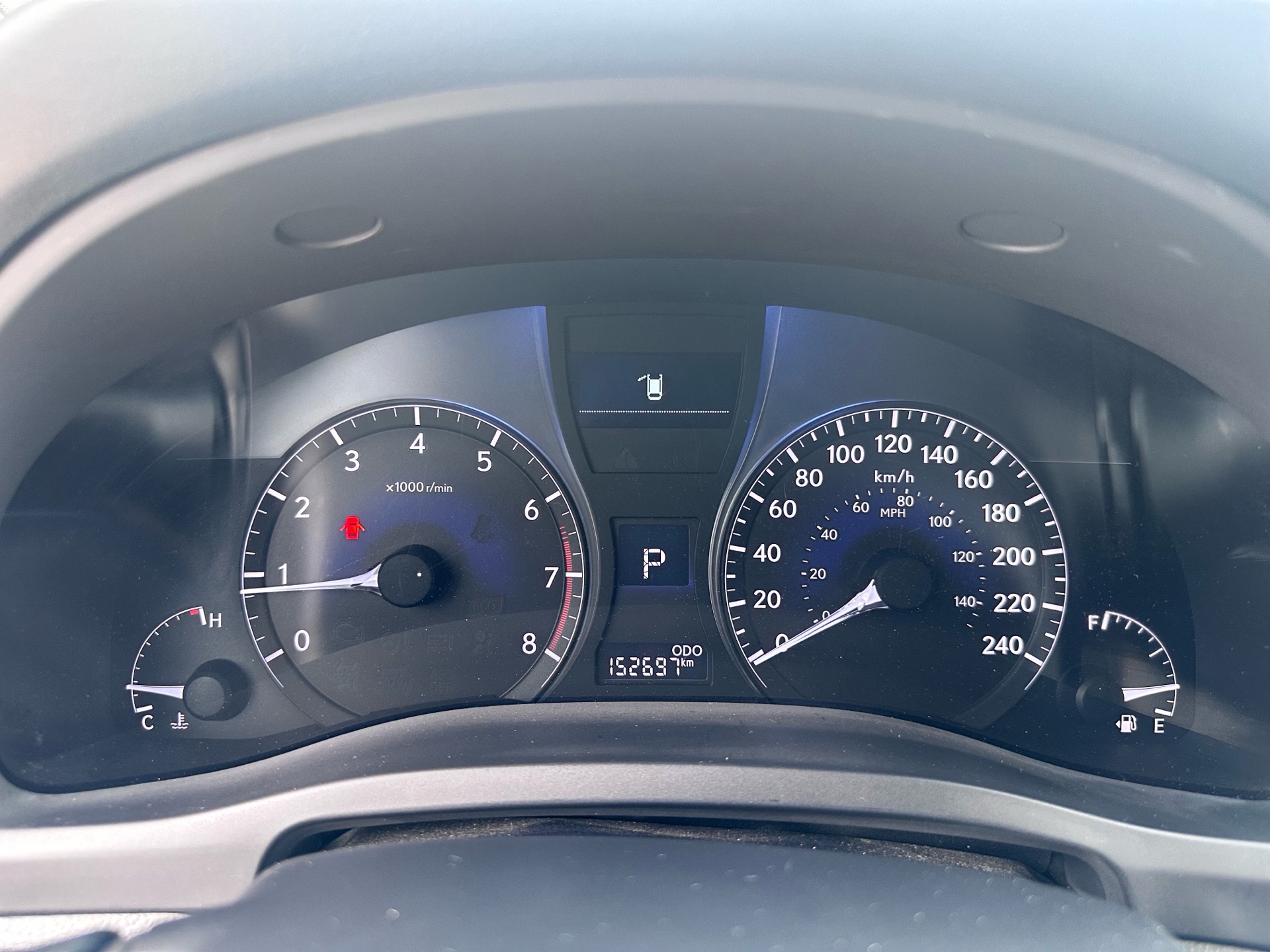 Warnings -inc: low fuel, low engine oil level, low washer fluid, front seat belt warning