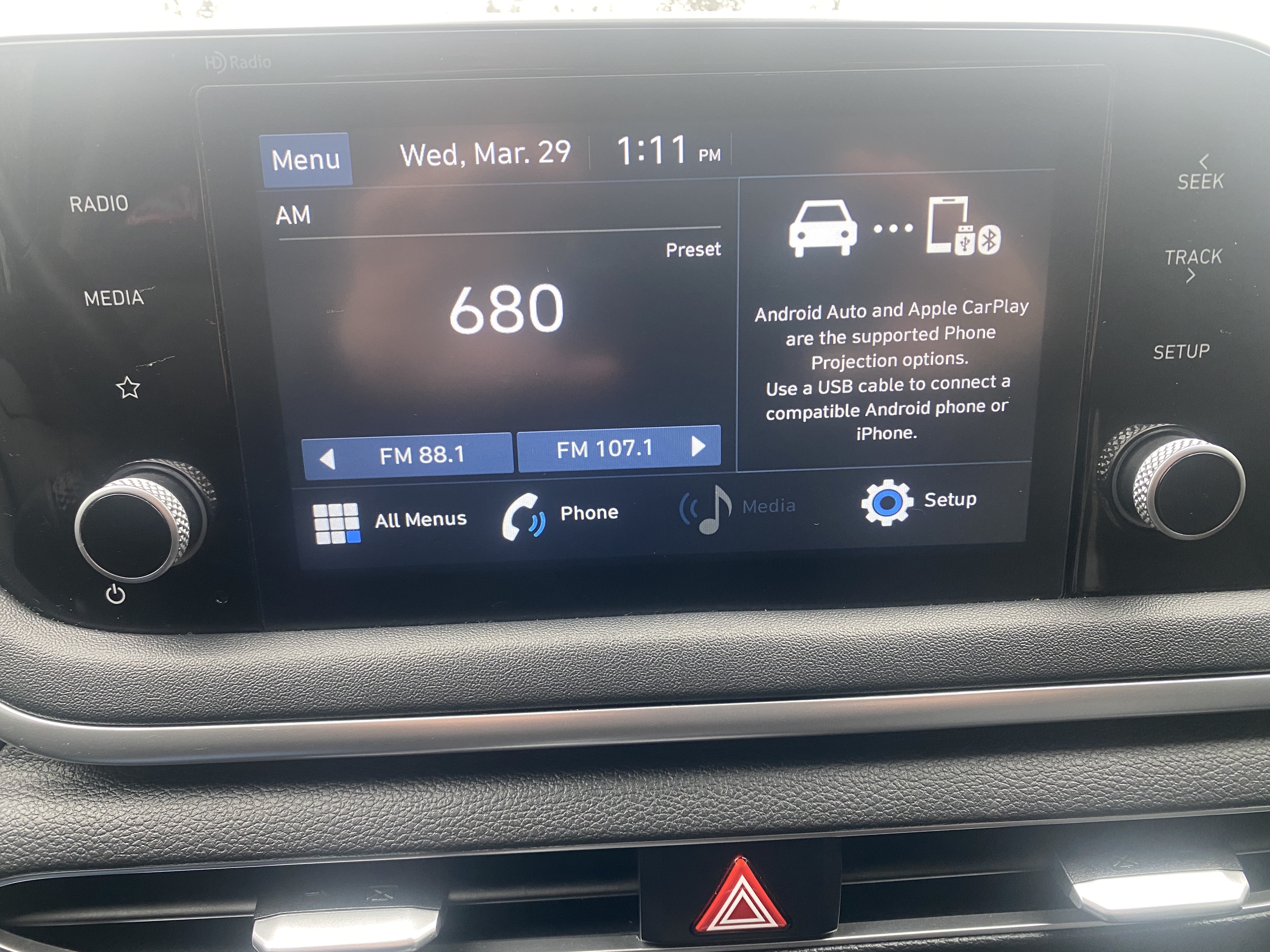 Radio: AM/FM/MP3 Display Audio -inc: 8.0" colour LCD touchscreen, 6 speakers, HD Radio technology w/multicasting, iPod and auxiliary input jacks, Apple CarPlay and Android Auto capability w/wired USB connection and Bluetooth hands-free phone system w/audio streaming